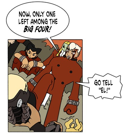 In Blackout (4) - Ch.19, at the end of war with Big Four who're El's soldiers, in Urano, 3 of Big Four has already lost their fight against them. Jet goes to meet Aaron with his colleagues. Dike went to frequent bars after he's hearing that.