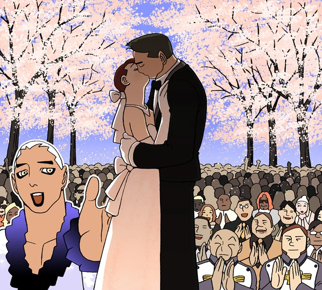 That someone May knows was him, the popera artist of the planet Bella. The second son's wife asks how does he knows miss May. In the past, God's avatar robot threats against the president of agency that he'll sued for the tax problem or drug problem. God asked a part time job and if the president of agency is agree, he'll pay it all up front. The president of agency won the lottery. God asked to him that if the Hyponne family ask how he knows miss May please say this. He answers to the second son's wife that miss May's late grandfather was a patron for Bella's art industry and without his help, he wouldn't be here today. The eldest son's wife asks to May that why didn't she tell them about that. He answers it's because May's as humble as her late grandfather and he didn't want anyone to know about his patronage and he never wanted to take any credit for it, that's why, to this day, the artists that he supported don't even know about his name and he was fortunate enough. And God thought, he didn't really need to take the Hyponne family to the island. The feeling was everyone seemed like Hyponne family had approve their marriage.