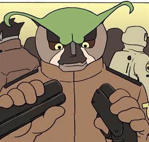 He looks like an owl. He seems to be very intimate with Master Sergeant Hador.