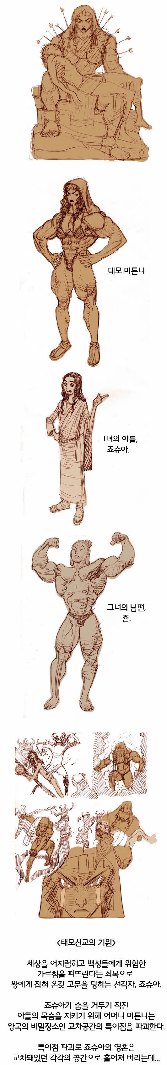 Madonna worked as a butcher in the imperial kitchen. The new husband John, whom Madonna met there, became a wonderful father to her son, Joshua. Joshua, a saint who conveyed the message of faith, hope, and love. As the people who have been saved from the suffering of life through Joshua's sermon have increased, he's eventually sentenced to crucifixion by scribes of cognation who're threatened by his presence. And on the day of execution, saint Joshua in front of God experience the absolute solitude of the universe... Frustrated by Joshua's execution news, Madonna and her husband and the Joshua's 12 apostles jump into the deadly perils to save their son. Madonna's choice to save a dying son after her husband's death was "Virgo Intactium", an imperial super-secret space called the realm of God. With the collapse of the singularity that was the intersection of parallel universes, the Joshua's soul is scattered in each parallel universe. Madonna says that the soul of God, Joshua is survived, and that when he comes back here again, those who killed him will be dead. After a miraculous escape with his 12 apostles, people began to flock to Madonna. And a new sermon is passed on to the suffering people... This is the origin of the religion of love and retribution, Church of Madonna.