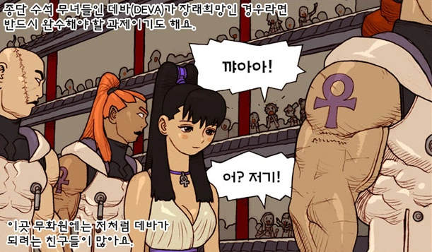 Girl: Ugh, it's frustrating! I don't know why Holy visit is such a thing. Why should we fill in the quota for the ampoule? Nowadays who's going to find Joshua's reincarnated body and become Deva? 99% will become Deva according to their grades. This makes people tired.
